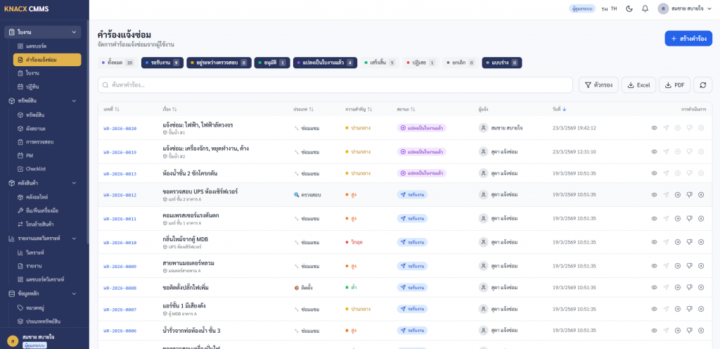 ฟีเจอร์ Knacx การจัดการงานซ่อมบำรุงแบบครบวงจร